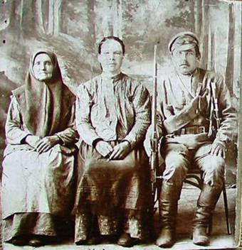 Зуев Алексей Васильевич, казак, участник первой мировой войны, с матерью и женой. Родился в п. Спасском, партизанил в отряде Каширина, умер в 1921 г.