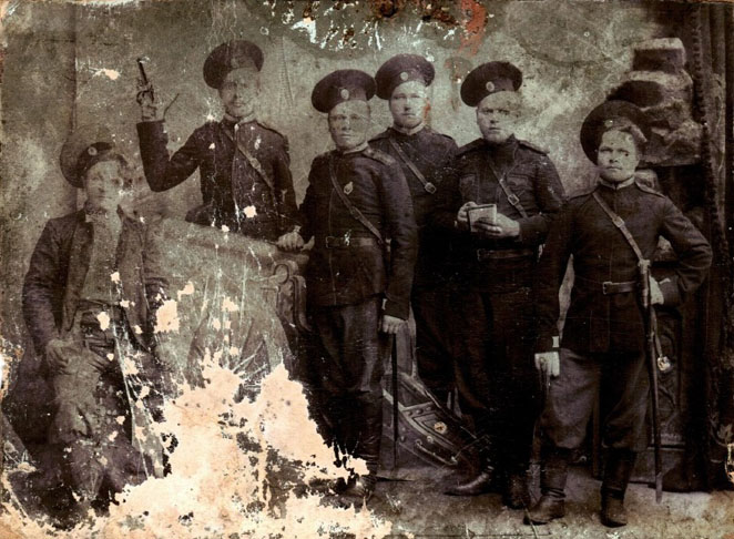 Казаки ст. Сакмарской 8-го ОКП ОКВ, крайний слева Болдырев Александр Евлампьевич